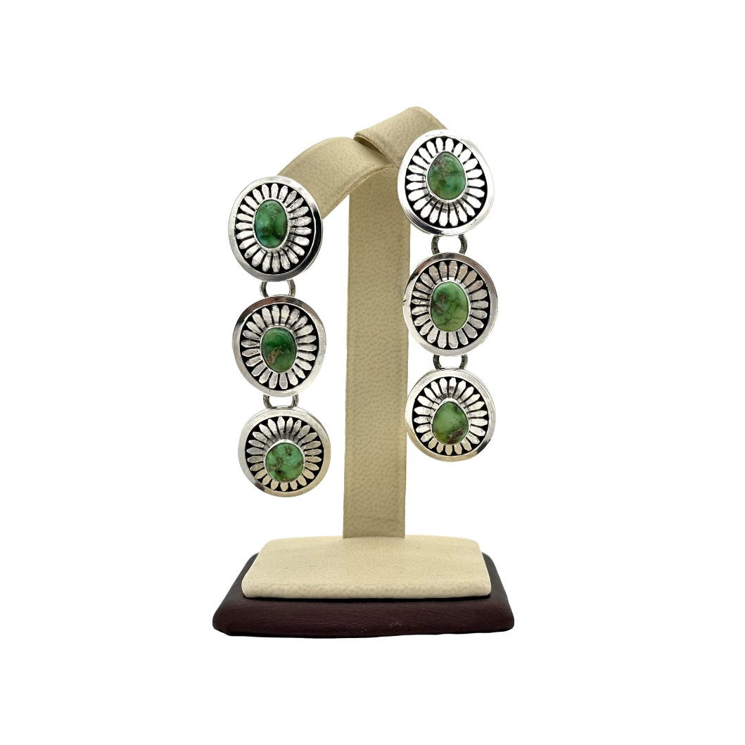 Leonard resides in Canoncito, NM, has four children and many grandchildren and one of his grandchildren is showing great promise as a future jeweler. Leonard is a skilled rodeo rider, on the weekends, he enjoys to rope in the rodeos even though he lost his thumb while roping it hasn’t affected his great craftsmanship.